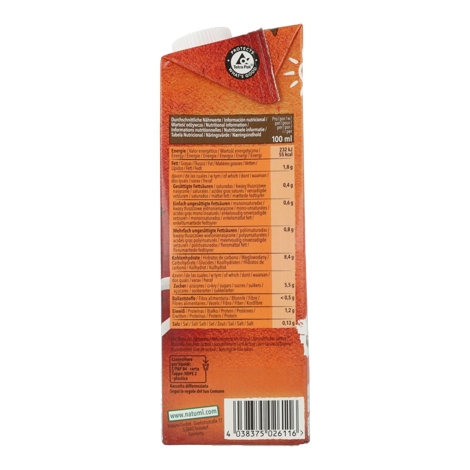 - Wasser, Vollkornhafer* (10%), Sojabohnen* (2%), Sonnenblumenöl*, Meersalz.* Aus kontrolliert biologischem Anbau, DE-ÖKO-013.