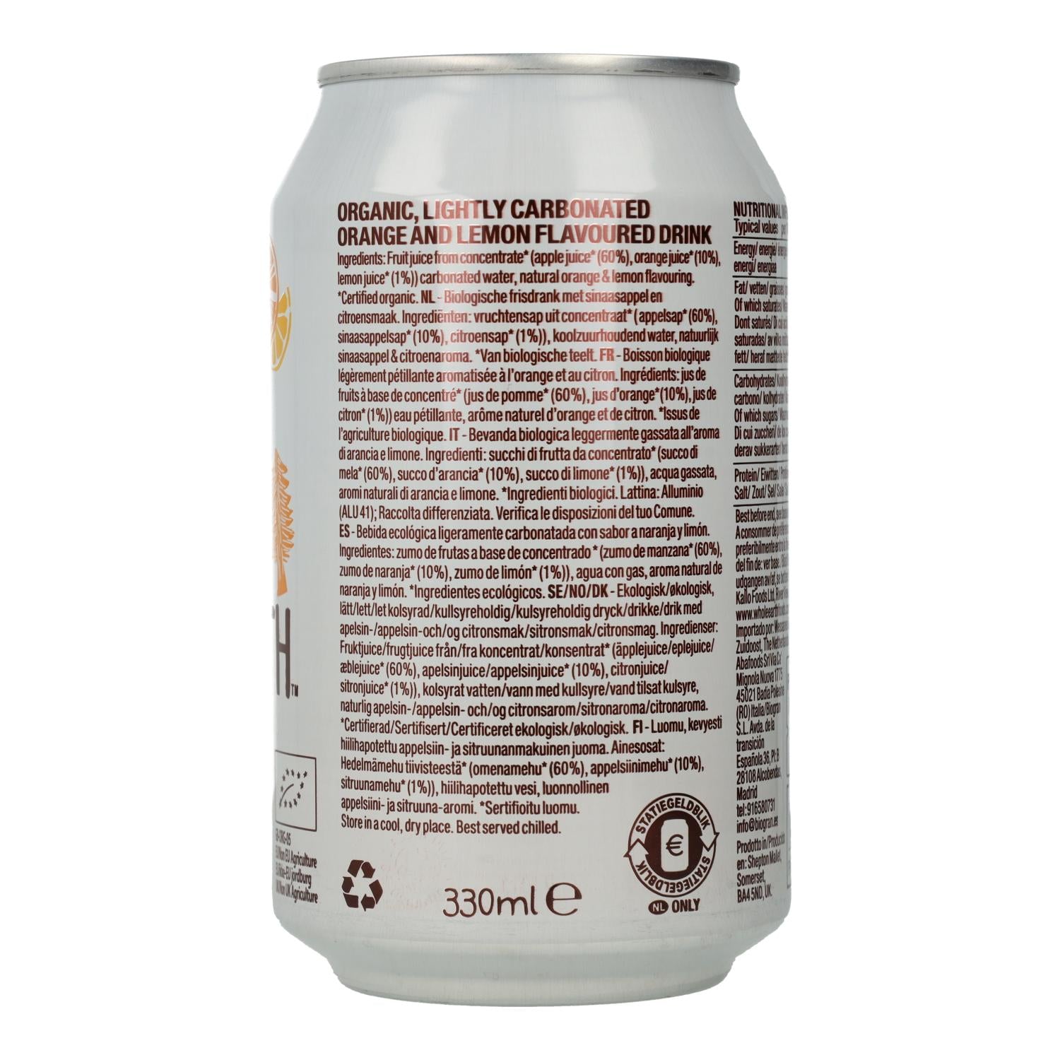 All information on "Whole Earth Organic Orange and Lemon Soft Drink 330 ml"