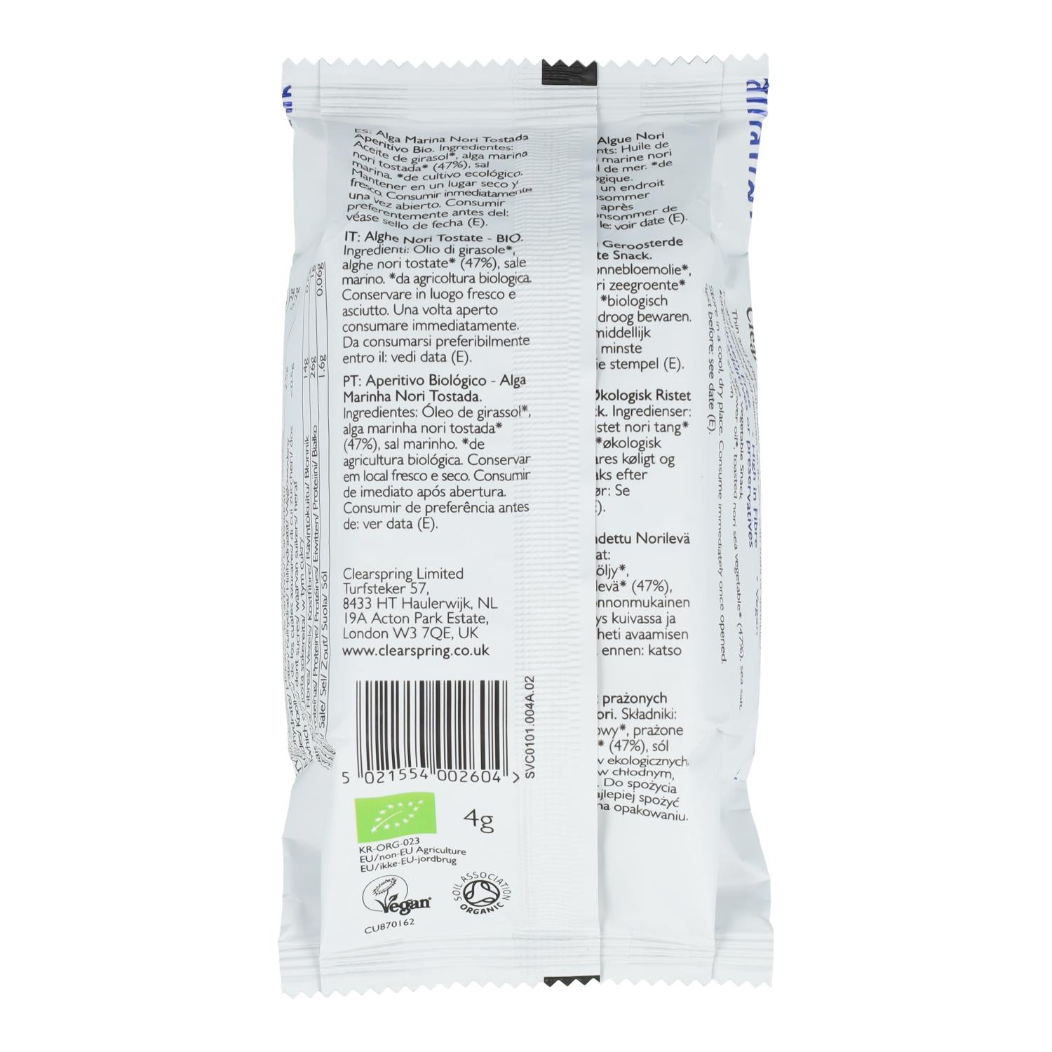 All information on "Bio-Snack mit gerösteten Nori-Algen von Clearspring, 4 g"