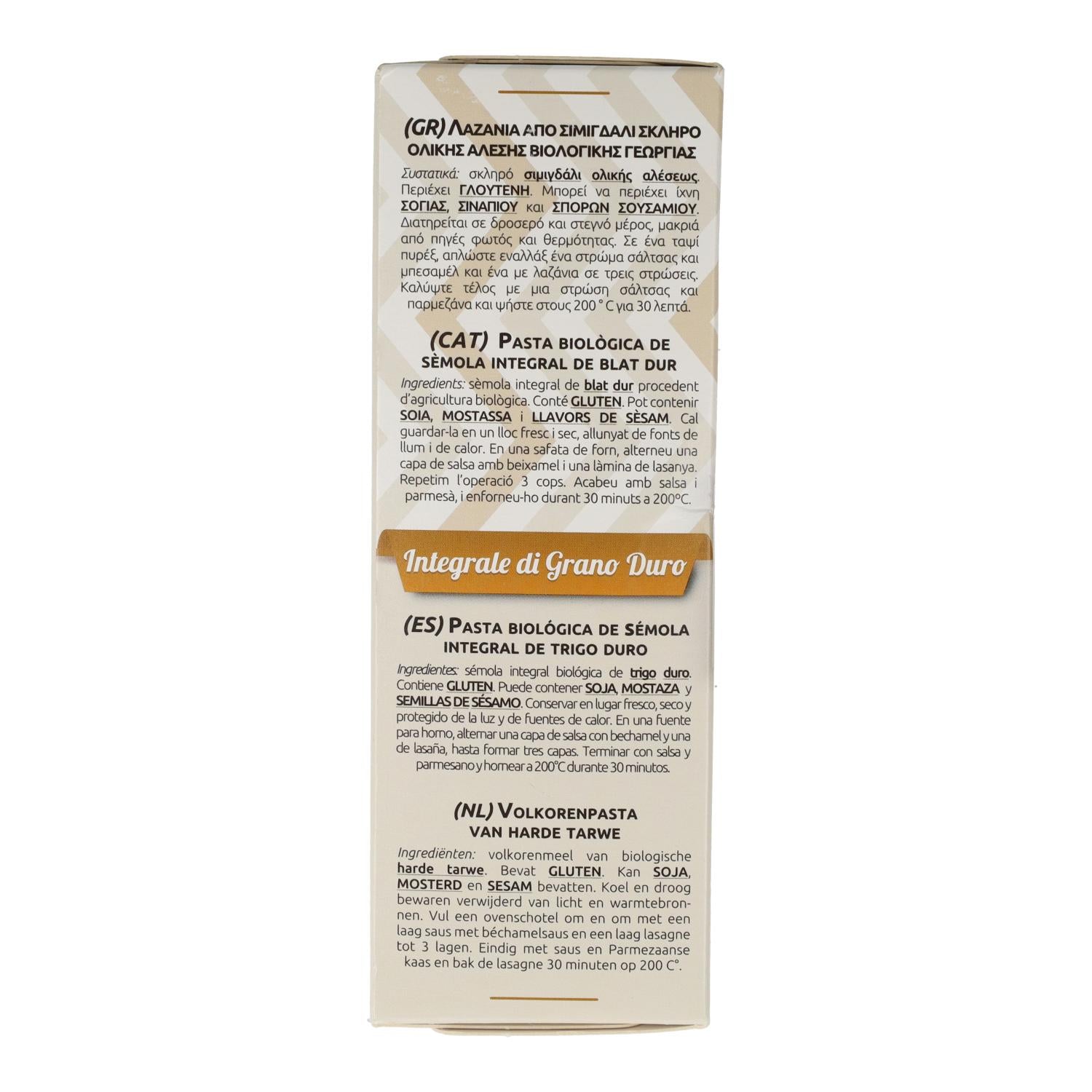 Lasaña elaborada con sémola integral de trigo duro procedente de agricultura ecológica. Una base saludable y natural para preparar lasañas con hasta tres capas, ideal para quienes buscan una opción integral y ecológica en sus recetas.