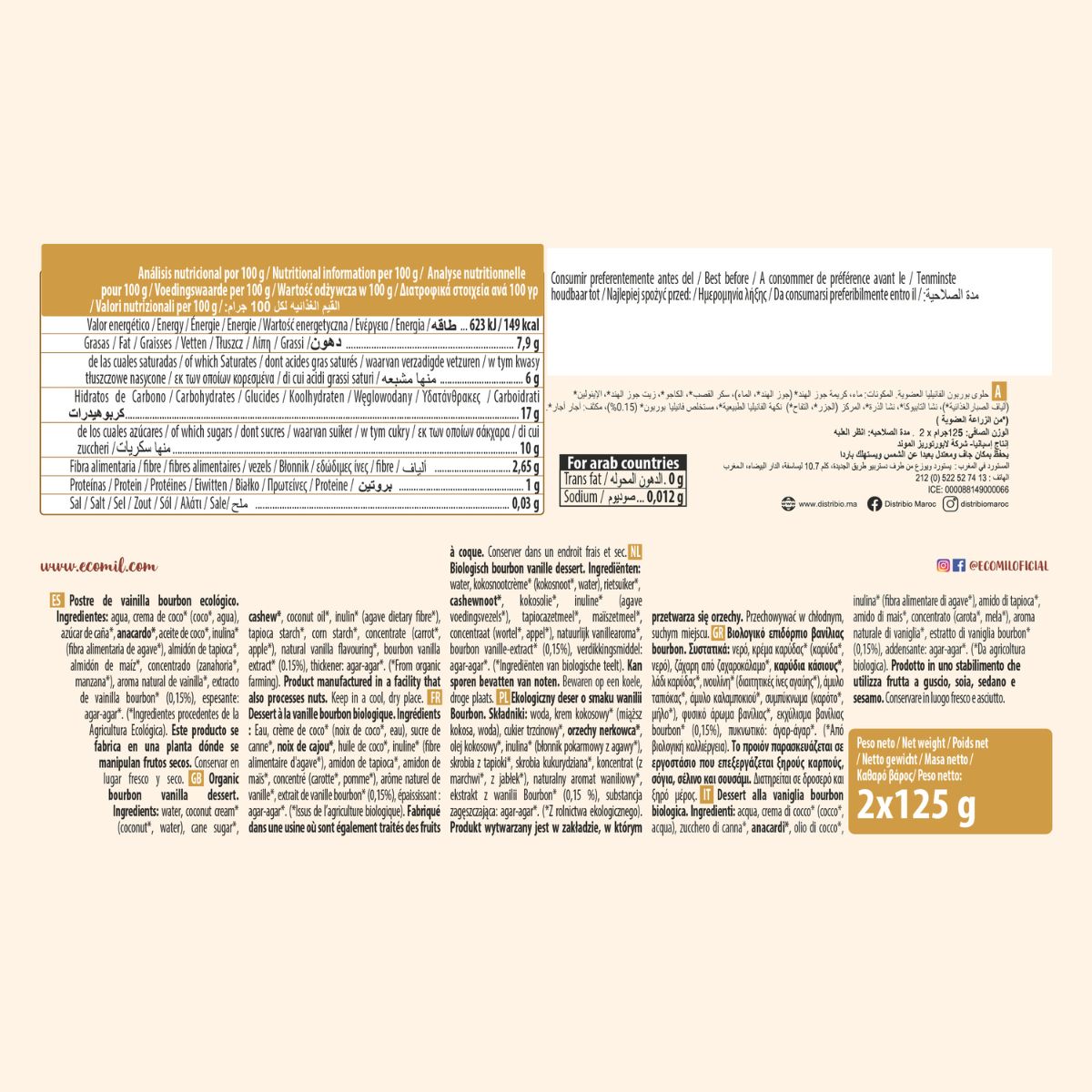 Toda la información sobre "Postre Vainilla Dream Bio Ecomil 2 uds de 125 g"