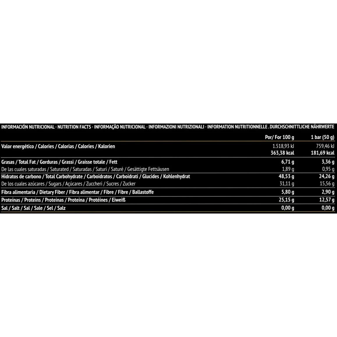 Informations nutritionnelles (pour une barre de 50 g)