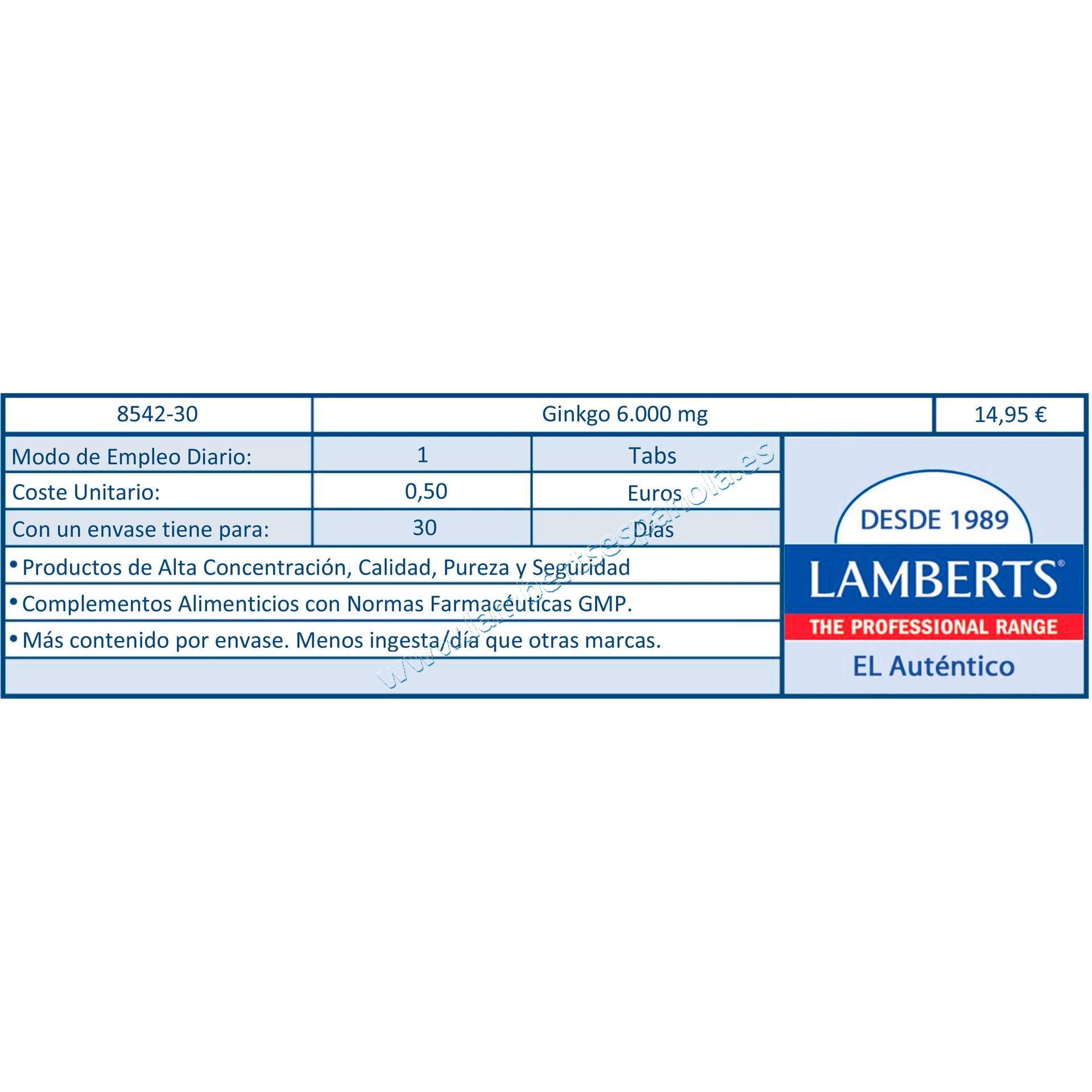 Toutes les informations sur "Ginkgo Biloba 6 000 mg, Lamberts 180 comprimés"