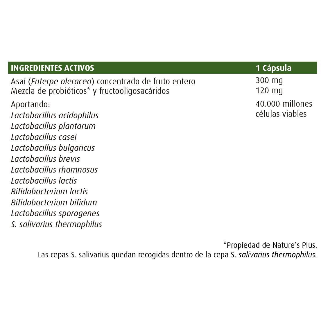 Complément alimentaire symbiotique à base de bactéries bénéfiques et de fructo-oligosaccharides d'açaï. Sans gluten.