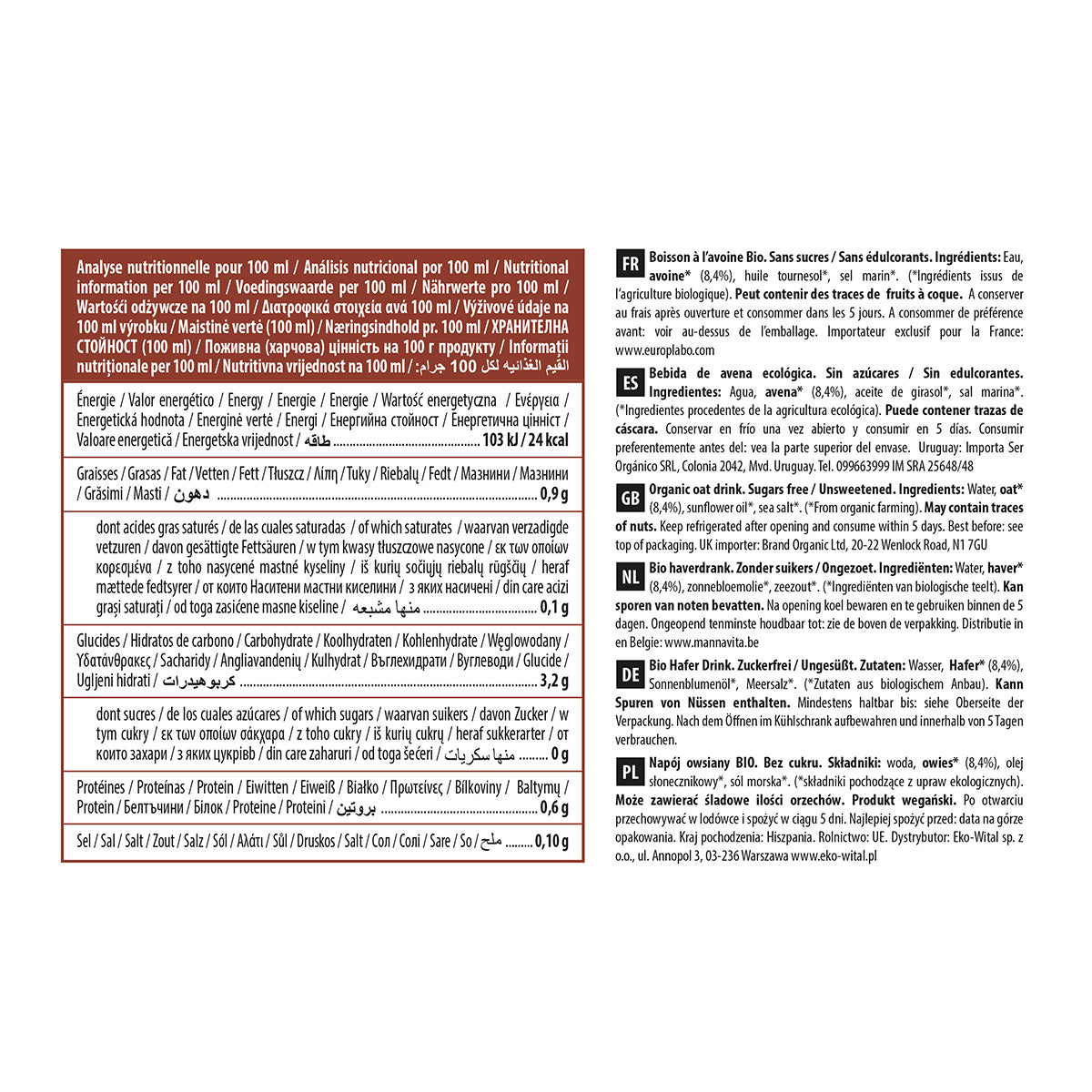 Tutte le informazioni su "Bevanda vegetale all'avena senza zucchero Bio ECOMIL 1 L"