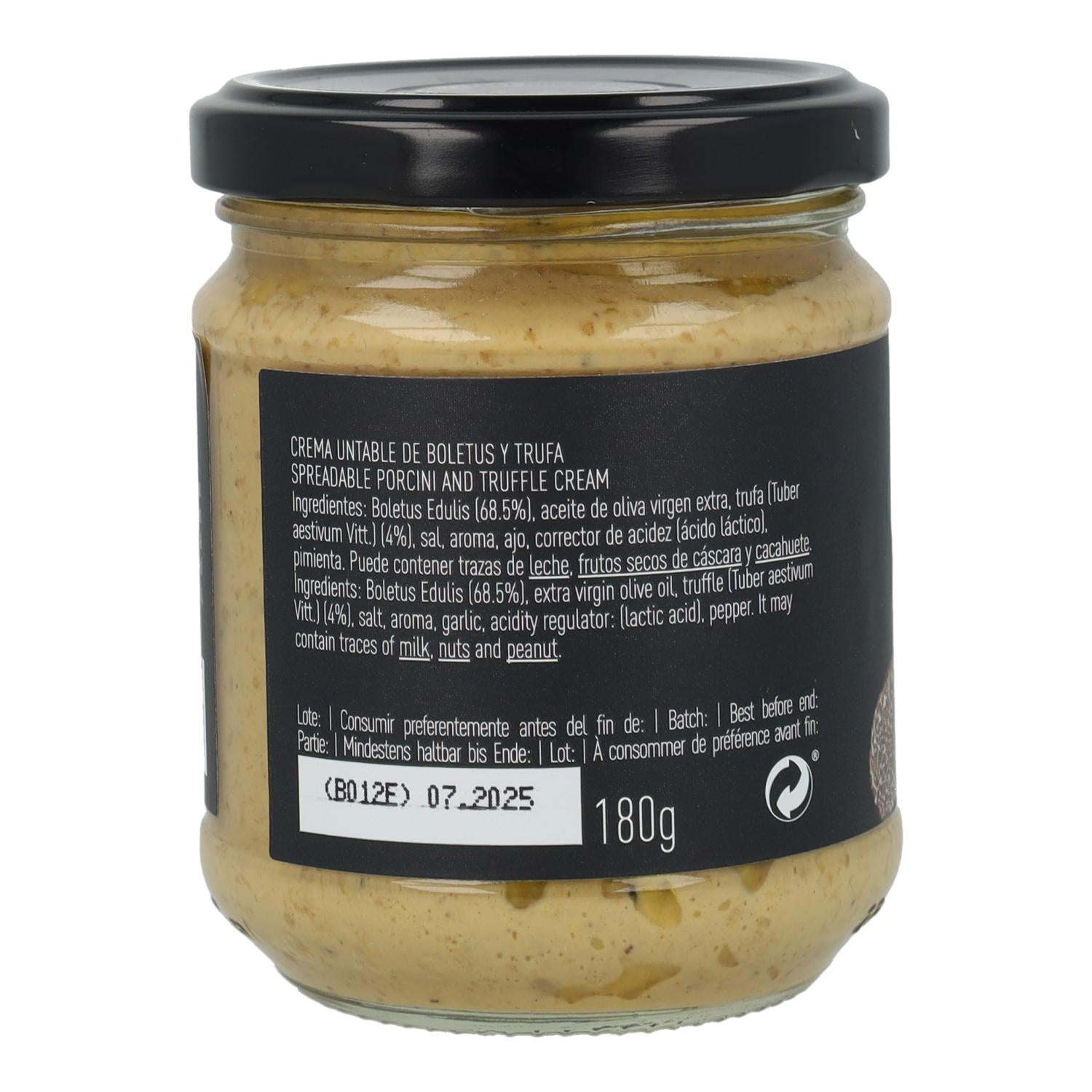 Steinpilz (68,5%), Natives Olivenöl extra, Sommertrüffel (Tuber aestivum Vitt.) (4%), Paniermehl ( Weizenmehl ( Gluten ), Wasser, Hefe, Salz), Salz, Knoblauch, Säureregulator (Milchsäure), Pfeffer.