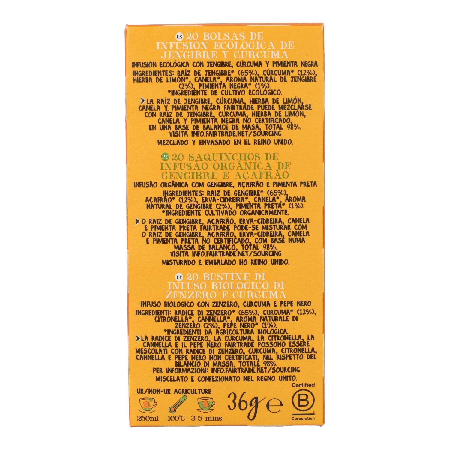 Tutte le informazioni su "Bio-Ingwer-Kurkuma-Aufguss von Cupper, 20 Teebeutel"