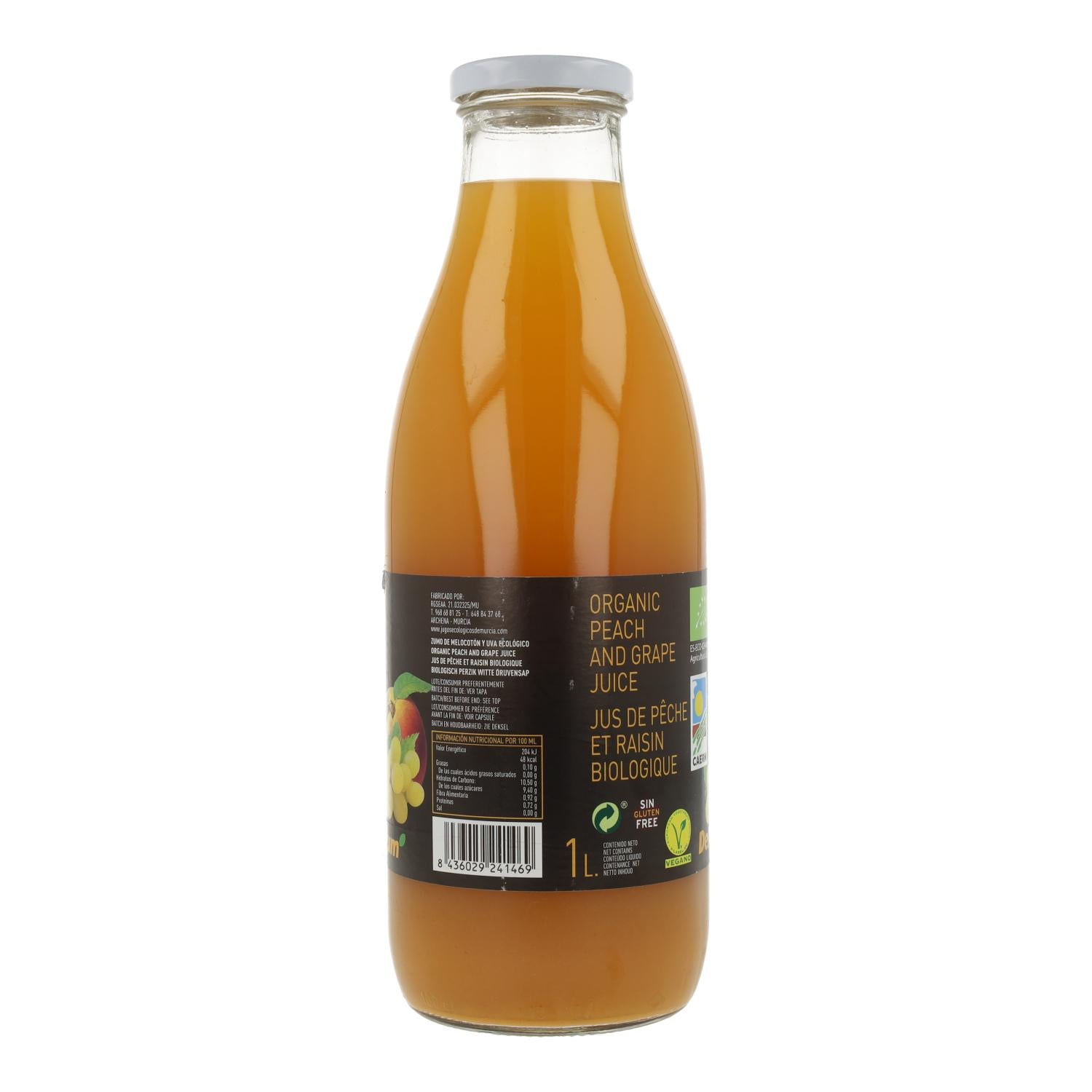 Pfirsich- und Traubensaft aus Bio-Pfirsichpüree und Traubenkonzentrat.