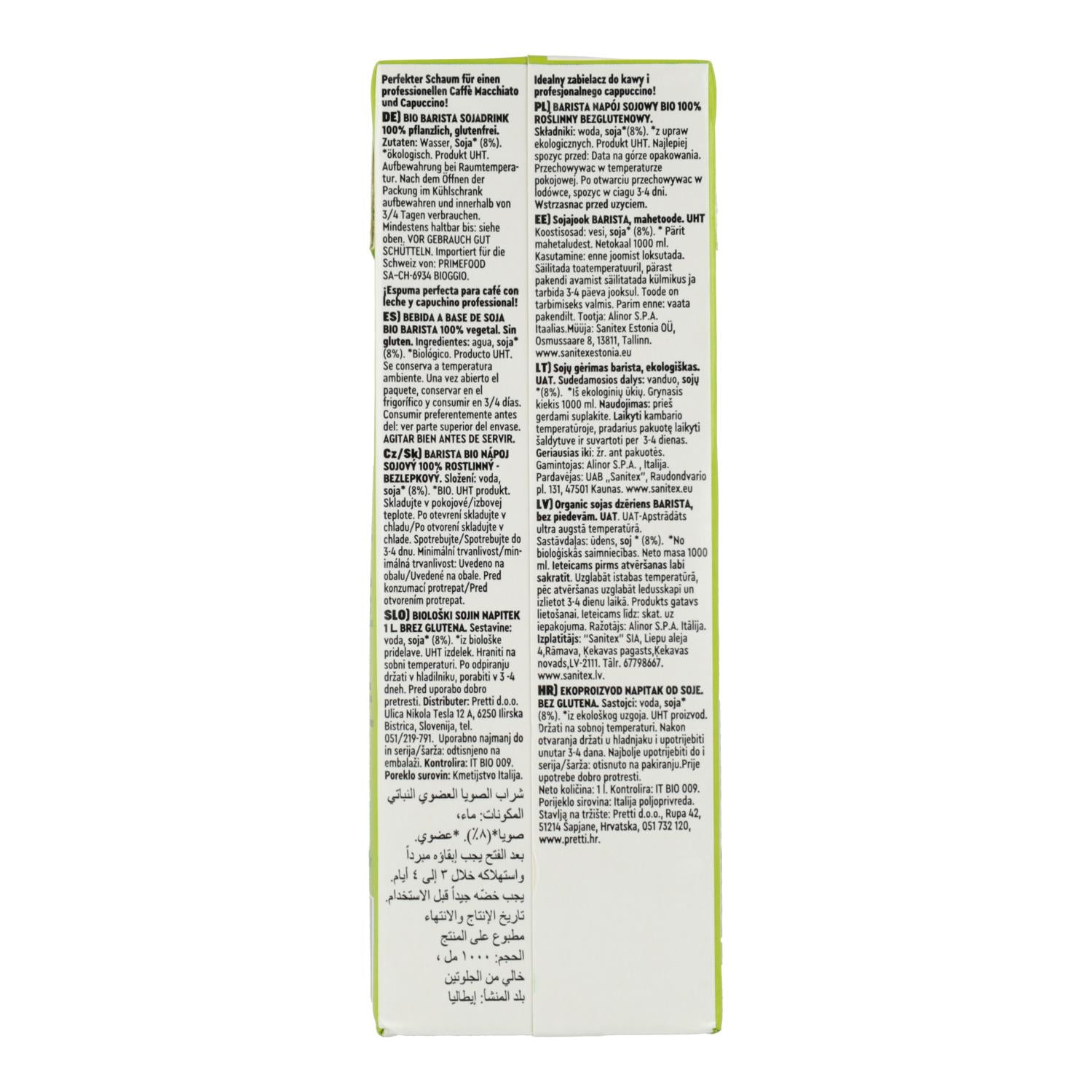 Alle informatie over "Glutenvrije biologische sojadrank Barista Vitariz 1 l"
