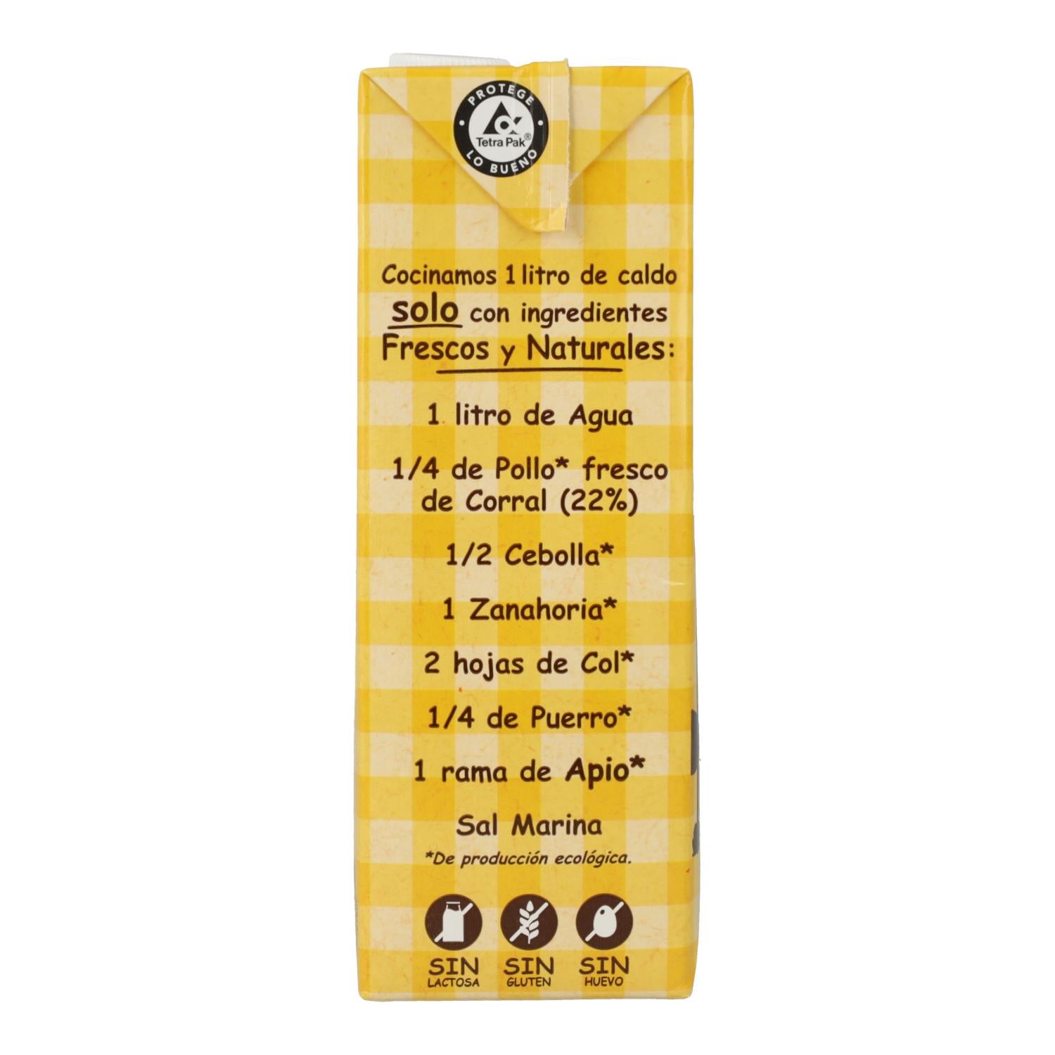 100 % Bio-Hühner- und Gemüsebrühe, drei Stunden lang schonend geköchelt, um den authentischen Geschmack der Zutaten zu bewahren. Ein Naturprodukt, frei von Konzentraten, künstlichen Zusatzstoffen, Laktose, Gluten und Eiern.