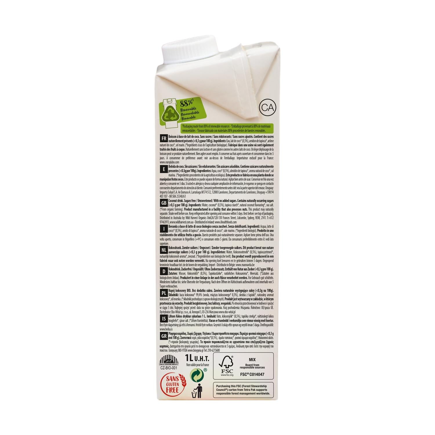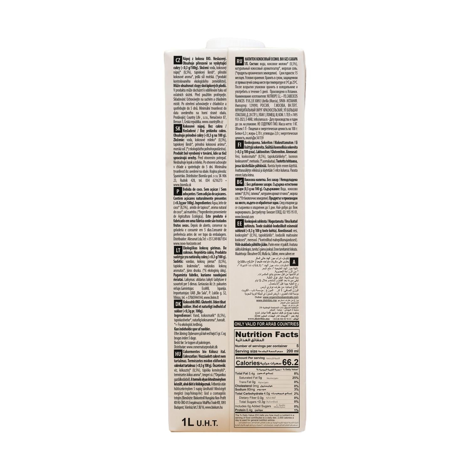 EcoMil Kokosnuss-Pflanzengetränk ist eine Alternative natürliche, leichte und gesunde Alternative zu herkömmlicher Milch, hergestellt aus Kokosnuss. Diese 6-Liter-Packung ist ideal für alle, die ein kokosnussfreies Getränk suchen. Ohne Zuckerzusatz, glutenfrei und laktosefrei, für Veganer geeignet und Für Menschen mit Nahrungsmittelunverträglichkeiten. Sein milder und erfrischender Geschmack. Es schmeckt pur, im Kaffee, in Smoothies, im Müsli oder für Verwendung in süßen und herzhaften Rezepten.