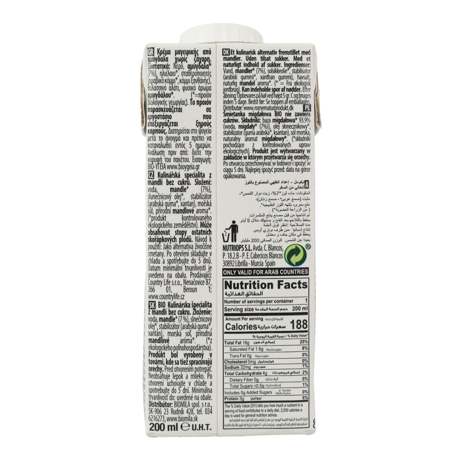 Bezcukrowy krem roślinny z migdałów Bio Cuisine Nature Ecomil 200 ml