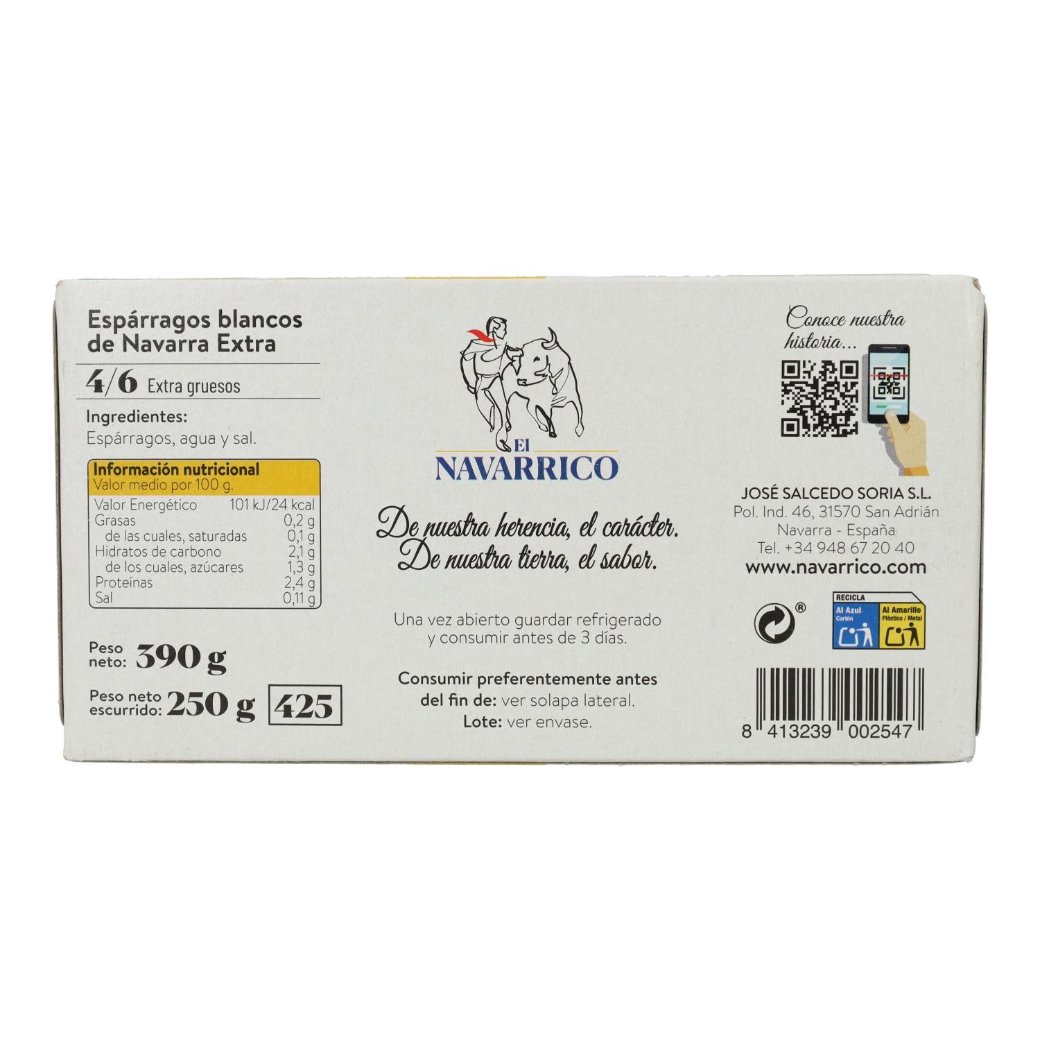 Der weiße Spargel aus Navarra Extra DO von El Navarrico ist durch die geschützte geografische Angabe „Spargel aus Navarra“ geschützt.