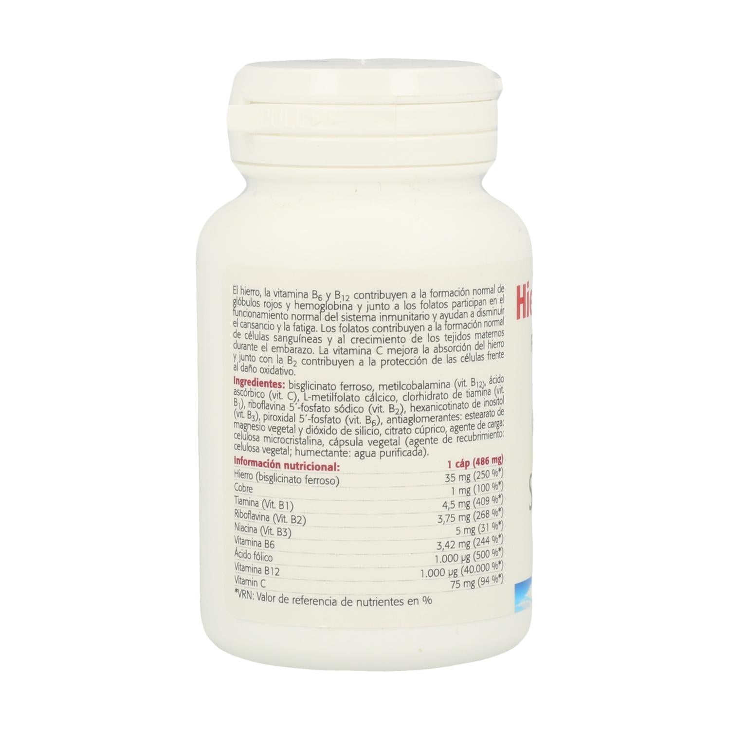 Zutaten : Füllstoff (mikrokristalline Cellulose), Eisenbisglycinat, L-Ascorbinsäure (Vitamin C), Calcium-L-Methylfolat, Methylcobalamin (Vitamin B12), Trennmittel (pflanzliches Magnesiumstearat und Siliciumdioxid), Thiaminhydrochlorid (Vitamin B1), Riboflavin-5'-phosphat-Natrium (Vitamin B2), Inositolhexanicotinat (Vitamin B3), Pyridoxal-5'-phosphat (Vitamin B6), Kupfercitrat, pflanzliche Kapsel (Überzugsmittel: Hydroxypropylmethylcellulose; Feuchthaltemittel: gereinigtes Wasser). | ||