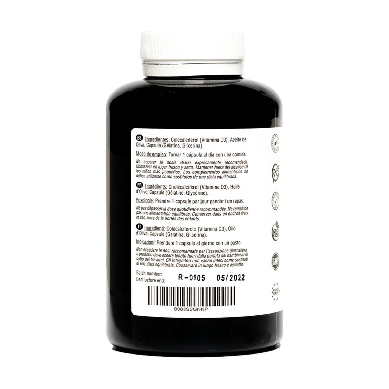 • Ausgezeichnete Formel mit reinem Vitamin D3 in Form von Cholecalciferol und nativem Olivenöl extra. Vitamin D trägt zur Erhaltung gesunder Knochen, Gelenke und Zähne bei, verbessert die Muskelfunktion und das Immunsystem und unterstützt die normale Aufnahme von Kalzium und Phosphor.