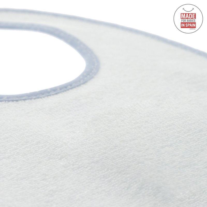 All information om "Rund haklapp med kardborreband Sky celeste/ Lluvia Cambrass"