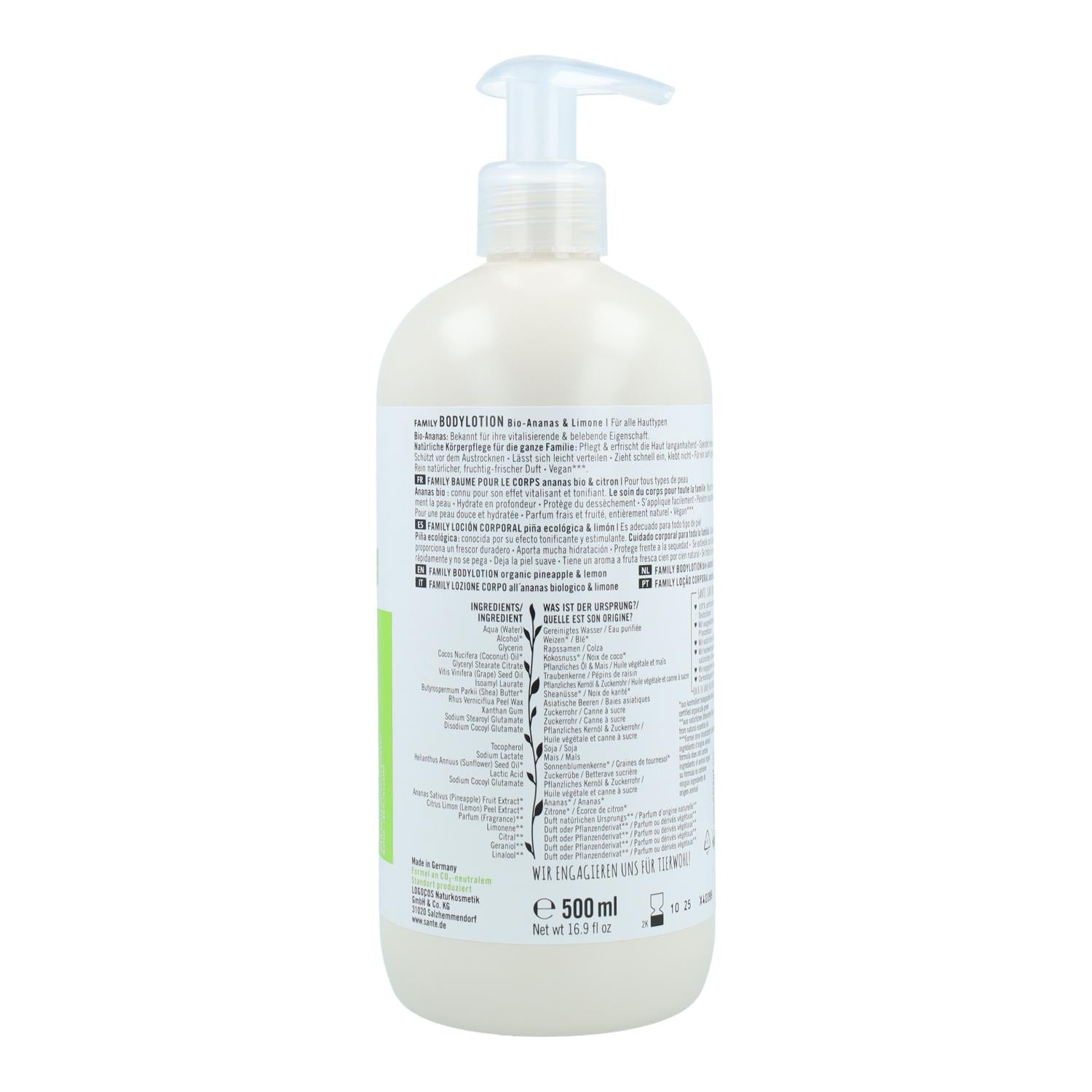 All information om "Kroppslotion med ananas och citron Sante 500 ml"