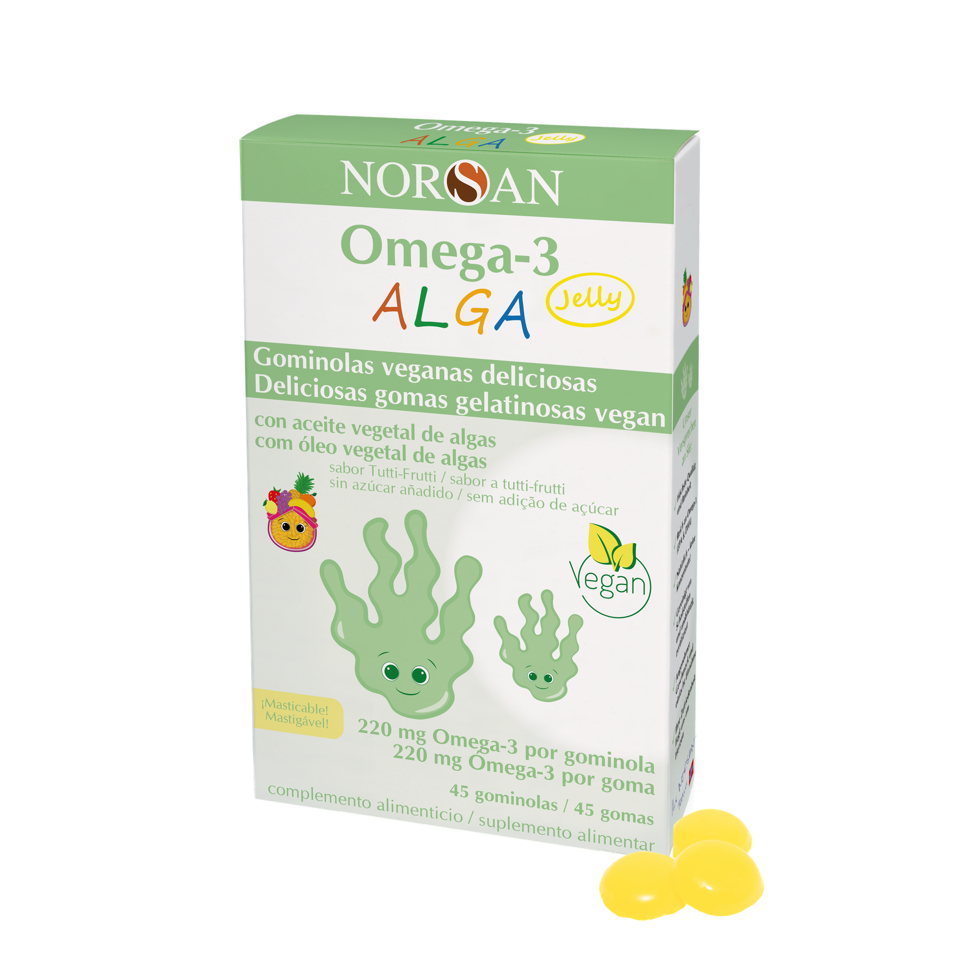All information om "Omega-3 ALGA Jelly NORSAN 45 g gelégodis"