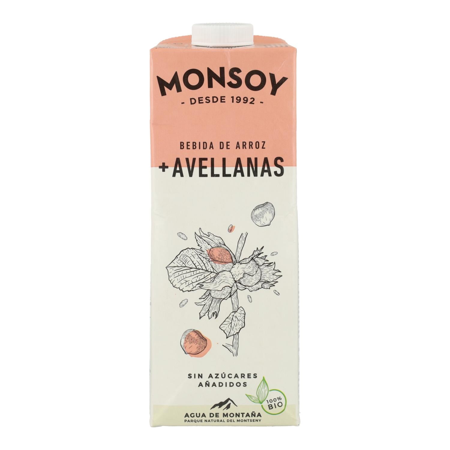 Packung mit 6 x Monsoy Bio-Reis-Haselnuss-Getränk 1L.